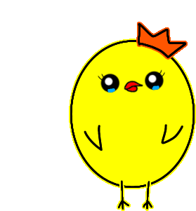 a cartoon drawing of a yellow chicken with a crown on its head