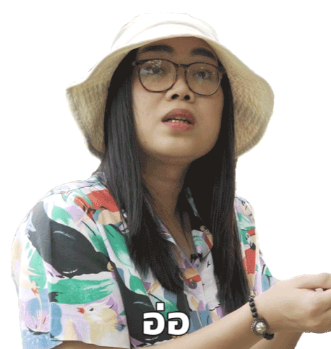 a woman wearing a hat and glasses has a sticker on her face that says ao
