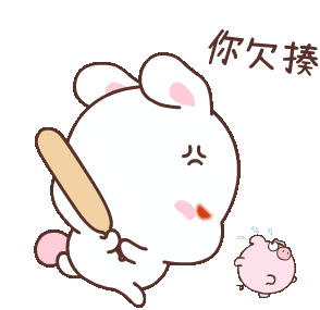 a cartoon rabbit is holding a bat next to a pig with chinese writing on it