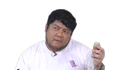 a man with a beard is holding a glass in his hand and has a question mark around his head .