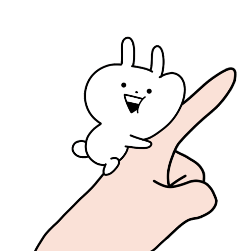 A cute Usagyuuun rabbit character happily jumps up from a finger, waving its arm. Playful and energetic.