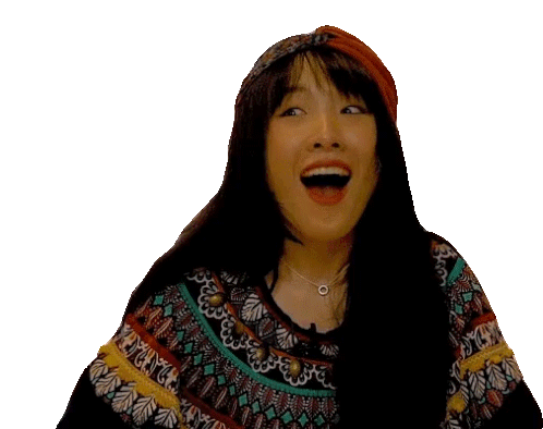 softpomz, a woman with long dark hair and a colorful top, expresses joy and excitement by clapping her hands.