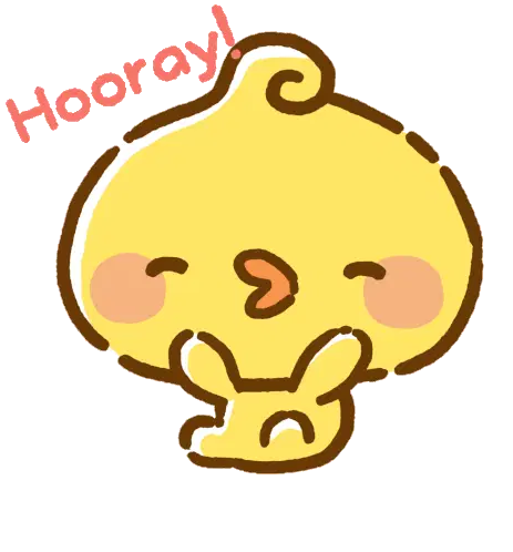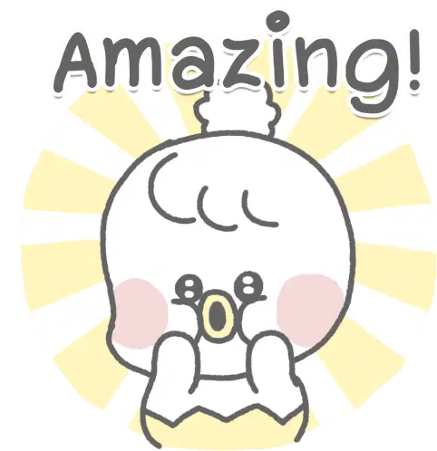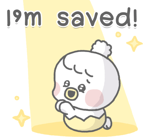 Piyomaru the chickling, with a relieved expression, prays and exclaims 'I'm saved!' in this cute animated sticker.