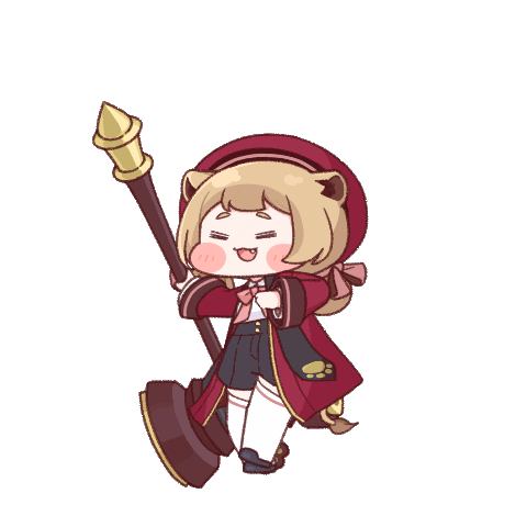 Animated sticker featuring Lion from Trickcal Revive, a pink-haired girl holding a staff with a determined expression.
