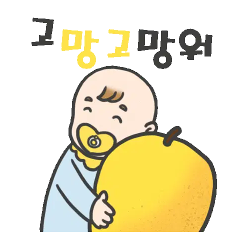브로캡틴 브로대장이 오렌지 그릇을 들고 '감사합니다'라고 인사하는 귀여운 애니메이션 스티커.