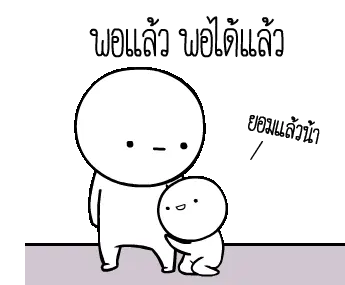 A simple cartoon character with a pleading expression, asking someone to stop with the Thai text 'Please stop, friend. I beg you'.