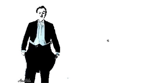 A man in a tuxedo with "The Discreet Charm of the Bourgeoisie" text, which vanishes in a puff of smoke.