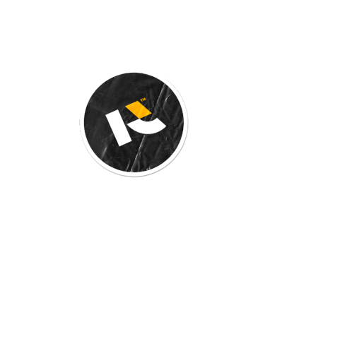 Multiple circular stickers featuring the black, white, and yellow Rinconello Inc logo with a 'TM' symbol.