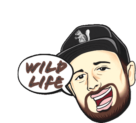 Animated sticker featuring Stinje Stinje Og, a cartoon man with a beard and cap, exclaiming 'WILD LIFE'.