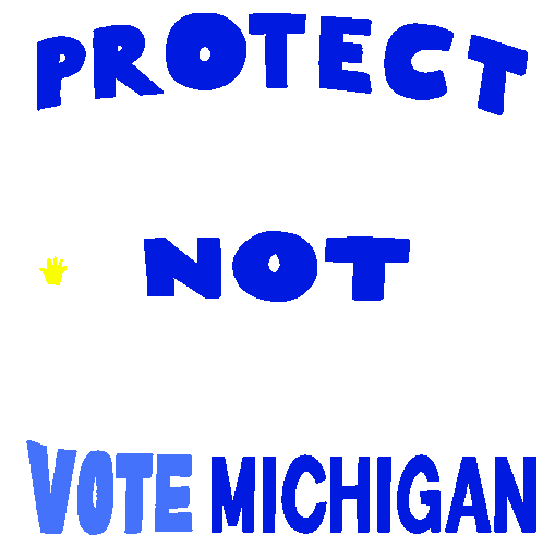An animated sticker promoting gun violence prevention and voting in Michigan, featuring the message 'PROTECT NOT VOTE MICHIGAN'.