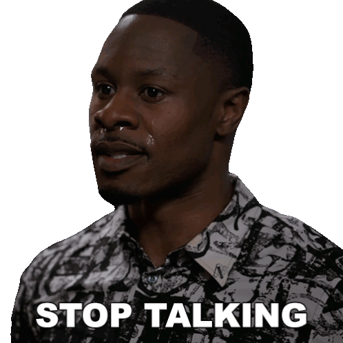 Gary Marshall Borders looks annoyed, telling someone to stop talking with a stern expression and a patterned shirt.