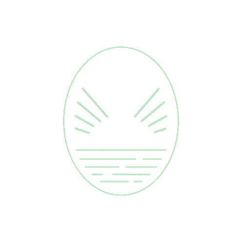A serene, minimalist animation depicting a stylized sunrise or sunset over water, enclosed within a simple circular outline.