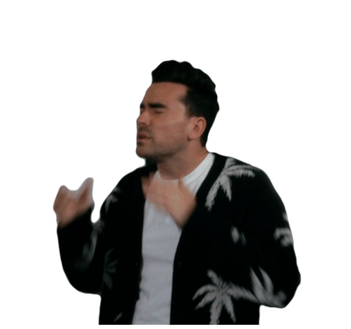 David Rose from Schitt's Creek covers his face in distress, then reveals a frustrated and stressed expression.