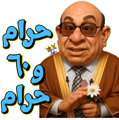 a cartoon of a man with glasses holding a flower with arabic writing below him