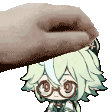 Sucrose from Genshin Impact, the alchemist, performs a cute and happy animated gesture with a smile.