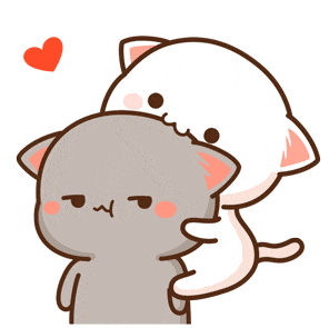 Peach Goma lovingly hugs Summer Ann, who appears annoyed, in this cute animated sticker featuring two adorable cats.