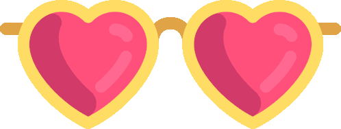 A fun animated sticker featuring a pair of pink heart-shaped sunglasses with a yellow frame, blinking playfully.