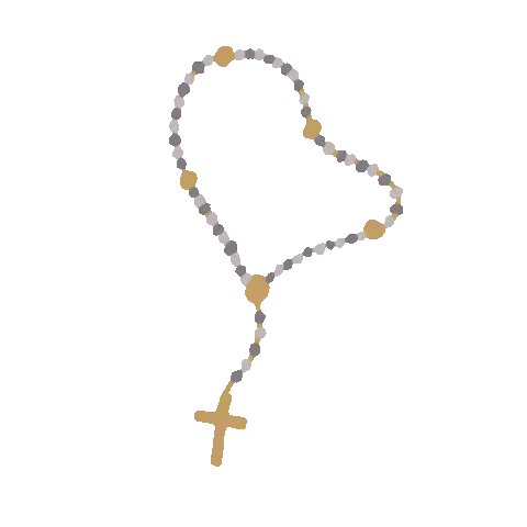 Suora Rosario, a cartoon nun with long black hair and glasses, holds a rosary, appearing contemplative.
