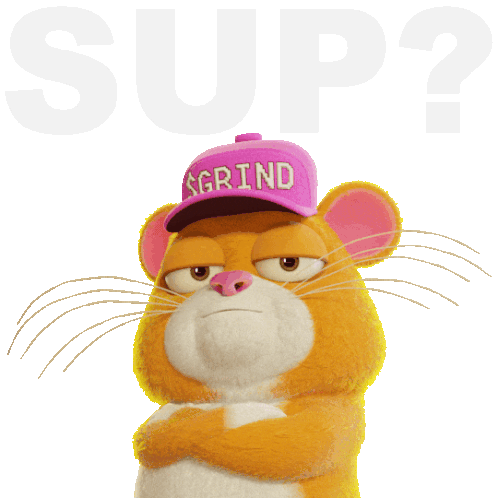a stuffed animal with a pink hat that says grind on it