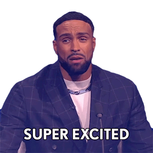 Ashley Banjo expresses extreme excitement, looking thrilled and eager while speaking into microphones.