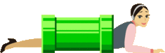 A classic green Super Mario Maker warp pipe with a character entering, ready for adventure and new levels.