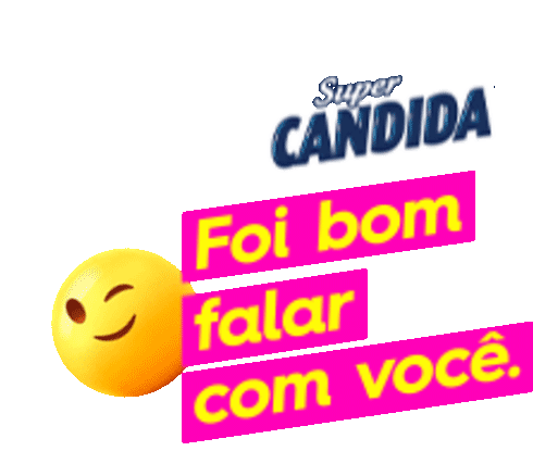 A winking emoji surrounded by hearts accompanies the Portuguese phrase 'Foi bom falar com você' for Super Candida.