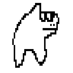Animated pixel art creature from Superstitional Realism Horse Race Test, wearing sunglasses and a hat, moving its head.