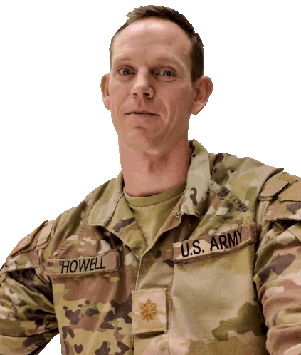 a man in a u.s. army uniform has the name howell embroidered on his uniform
