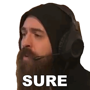 Samus Paulicelli, a man with a beard, headphones, and a hood, confidently says 'Sure'.