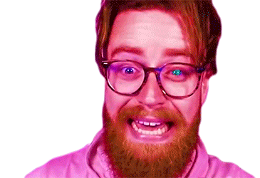 Lubatv, a man with a beard and glasses, shows a scared and surprised reaction with a vibrant red filter.