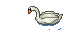 a pixel art illustration of a swan with a red beak .