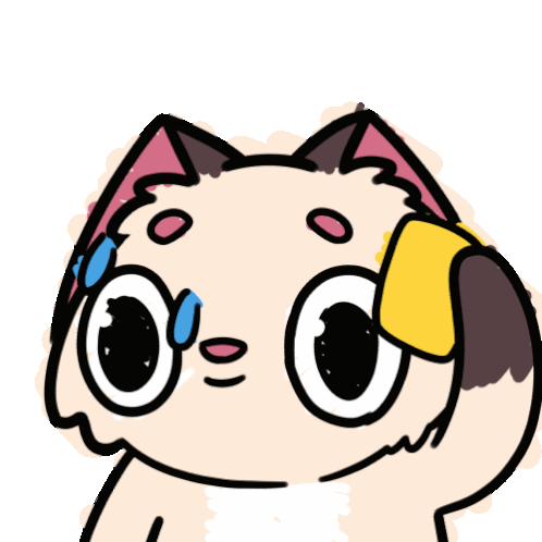 A cute cartoon cat looks nervous and scared, with a tear rolling down its cheek and a worried expression. An animated sticker.