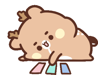 A cute Sweethouse Happy Deer character lies on its side, playfully interacting with colorful blocks.