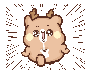 A cute, happy Sweethouse deer cartoon character with antlers and rosy cheeks, smiling and holding a white object.