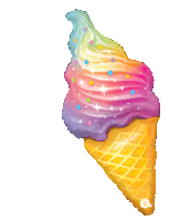 Vibrant animated sticker of a rainbow swirl ice cream cone adorned with colorful sprinkles and a shimmering effect.