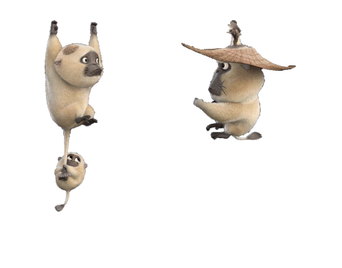 Two playful monkey-like characters from Raya And The Last Dragon swing and interact joyfully.