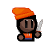 Killah, a pixel art character in an orange beanie, performs a swift sword slash with dynamic action.