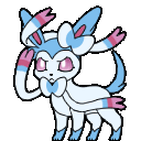 Pixel art animated sticker of Sylveon, the fairy-type Pokémon, in a dynamic pose, ready to slap.