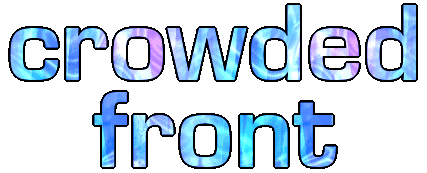 Animated text displaying 'crowded front' with a wavy blue and purple texture, representing a system's plurality.