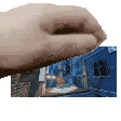 a close up of a person 's hand holding a picture of a house .
