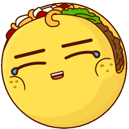 A cheerful cartoon taco emoji is laughing so hard that tears are streaming down its face, expressing extreme joy or amusement.