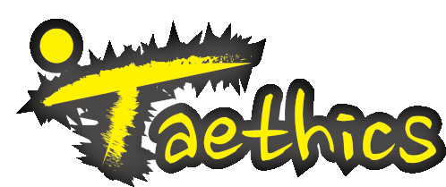 a logo for taethetics with a yellow and gray design on a white background