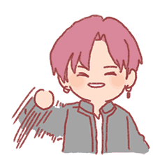 Takumi, an adorable anime-style character with pink hair, flashes a cute peace sign with a sweet smile.