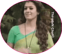 Tamil actress Jothiga (also known as Nayanthara) waves with a gentle smile, wearing a green saree, for ThirudaN Chat.