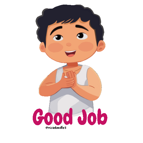 a cartoon of a boy clapping with the words good job above him