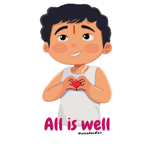 a cartoon drawing of a boy making a heart with his hands and the words all is well below him