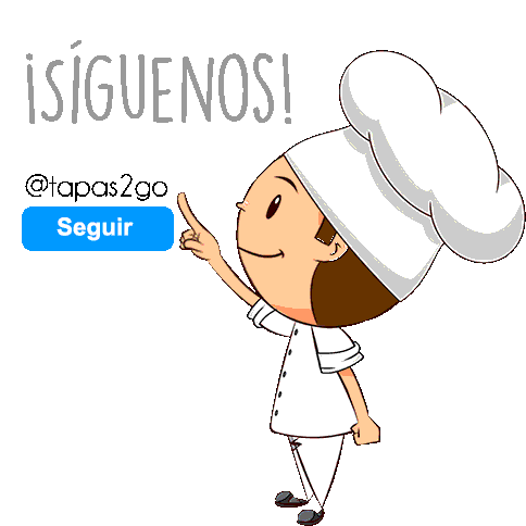 A friendly cartoon chef from Tapas2go winks and gives a thumbs up, inviting viewers to follow them.