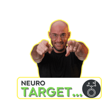 A bald man with glasses points at the viewer, with 'NEURO TARGET...' text and a brain-like logo.