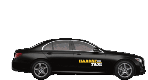Animated sticker showcasing black Mercedes-Benz taxi vehicles from 'HAAGSE TAXI' in The Hague, Netherlands.