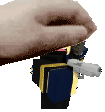 Tds Commander from Roblox Tower Defence Simulator, a hand holding a gun in front of a shield, ready for battle.